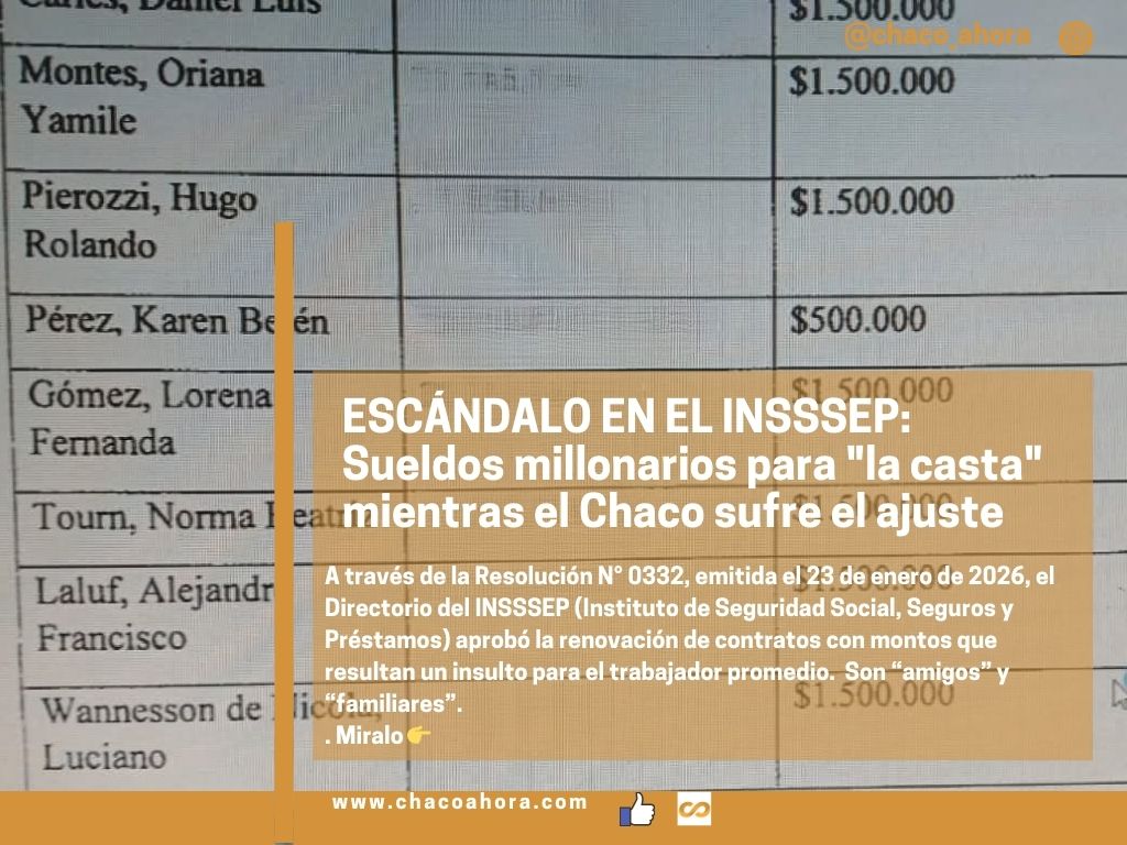 📄Firmado el 23 de enero, la Resolución 0332 confirma que hay una “casta” que sigue de fiesta mientras el resto del Chaco se ajusta el cinturón: