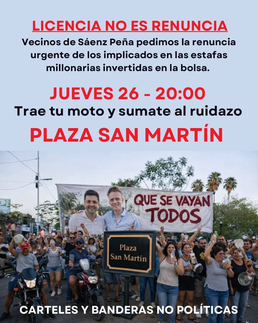 HomePoliticaCORRUPCIONSÁENZ PEÑA - Vecinos autoconvocados exigen renuncias y no licencias tras el...