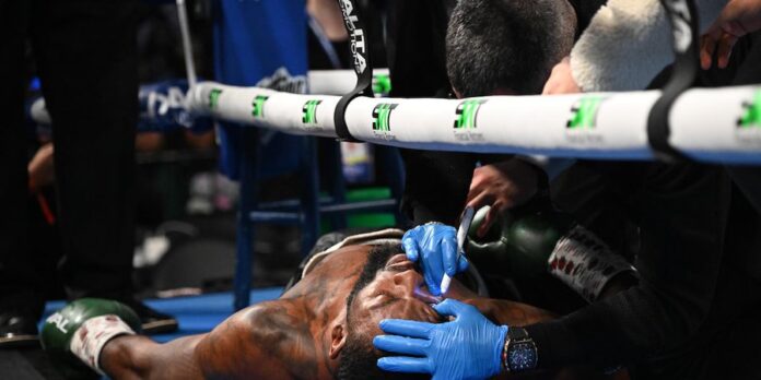 El boxeador Joseph George recibióEl boxeador Joseph George recibió atención médica de emergencia en el ring (AP)