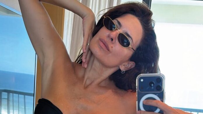 El diseño aportó un guiño retro y resaltó la silueta, mientras que el pelo suelto y sin make up completó una estética bien playera, como recién salida del mar, en sintonía con el estilo relajado y natural que mostró durante todo el viaje.