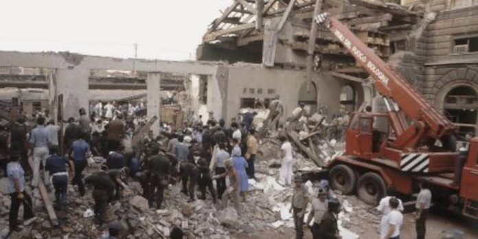 Era sábado a la mañana y la estación central de trenes de Bolonia estaba colmada de turistas y viajeros –familias enteras– que esperaban abordar los trenes hacia sus destinos para disfrutar de las vacaciones de verano. No sabían que un grupo de desconocidos acababa de colocar una bomba armada con una mezcla de TNT y T4, un explosivo de uso militar, en una valija, con un mecanismo de relojería programado para que detonara a las 10.25. Exactamente a esa hora, la explosión destruyó casi todo el edificio de la terminal e impactó en un tren que hacía el recorrido entre Ancona y Chiasso. El estruendo se escuchó a varios kilómetros y la onda expansiva hizo estallar los vidrios de las ventanas en un radio de varias cuadras. Las ambulancias no daban abasto para trasladar los heridos a los hospitales y se debió recurrir a micros, taxis y autos particulares. Debajo de los escombros, los muertos se contaban por decenas. Con el correr de las horas se sabría que el explosivo había sido colocado en la sala de espera del edificio y que el saldo era escalofriante: 85 muertos y alrededor de 200 heridos, muchos de ellos horriblemente mutilados, en el peor atentado terrorista perpetrado en Italia desde el final de la Segunda Guerra Mundial.
