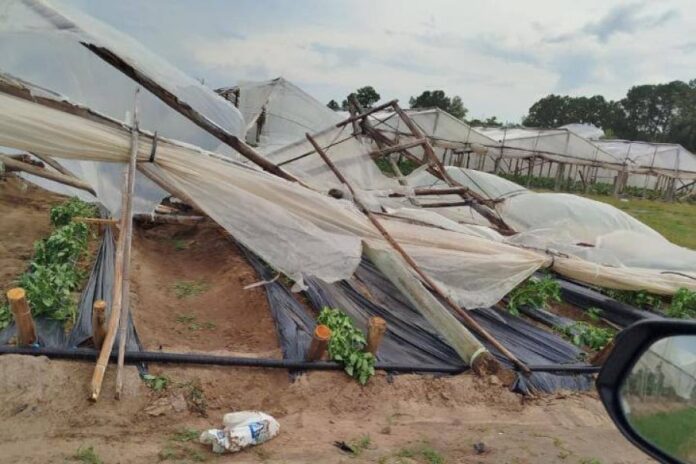 Con ráfagas de entre 50 y 80 km./hora destruyó una importante cantidad de tendaleros en la zona de Lavalle, Santa Lucía y Bella Vista.