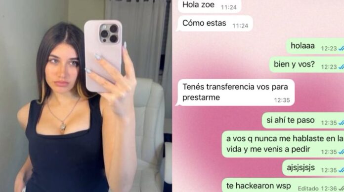 Luego de eso, llegó el mensaje que la sorprendió por completo a Zoe. “¿Tenés transferencia vos para prestarme?“, le preguntó. Inmediatamente, la chica se percató que se trataba de una estafa y le respondió. ”Si, ahí te paso. A vos que nunca me hablaste en la vida y me venís a pedir jajaja. Te hackearon WhatsApp”.