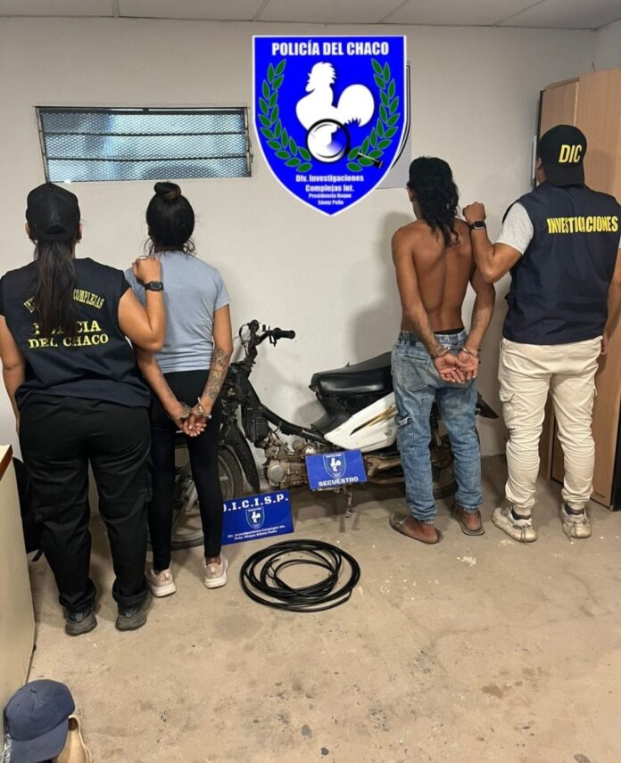 Al dirigirse al lugar, los efectivos procedieron a la conducción de un hombre y una mujer, quienes se encontraban en posesión de una motocicleta que habría sido utilizada para cometer el ilícito.