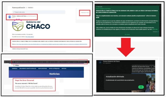 En un comunicado oficial, que insólitamente minutos después fue borrado del canal de WhatsApp del área de prensa oficial e incluso eliminado de la página web www.chaco.gob.ar el ministro Oscar Dudik atribuyó la demora en el pago a que las áreas contables “no concluyeron su liquidación”, asegurando que, una vez finalizados los trámites, se abonará “mediante planilla complementaria”.