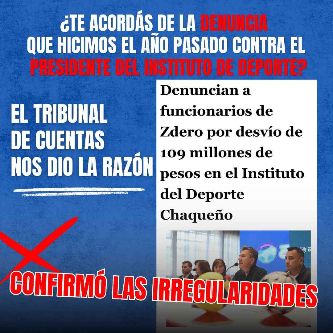 Lo que durante meses el oficialismo intentó relativizar, minimizar o directamente silenciar, hoy empieza a adquirir peso institucional. El Tribunal de Cuentas del Chaco resolvió exigir la devolución de 8.470.000 pesos a directivos del Instituto del Deporte Chaqueño y, además, mantiene bajo investigación responsabilidades por otros 12.487.756 pesos, en el marco de la denuncia presentada por los diputados provinciales Nicolás Slimel, Mariela Quirós y Analía Flores.