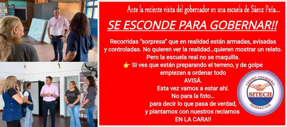 Bajo la consigna de un supuesto “operativo maquillaje”, denuncian que estos recorridos no son espontáneos, sino previamente organizados y controlados para mostrar una imagen distorsionada del estado real de las escuelas. “Preparan el escenario, ordenan todo para la foto… pero la realidad no entra en ese encuadre”, señalaron.