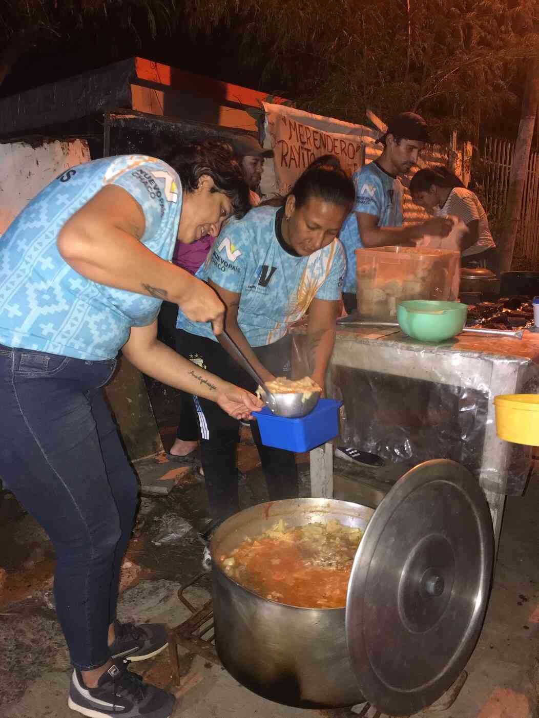 En la oportunidad se sirvió a los asistentes una vianda caliente que incluyó postre , esta trabajo en el terreno se realiza en el marco un profundo compromiso humano y cristiano, para asistir a las familias vulnerables.